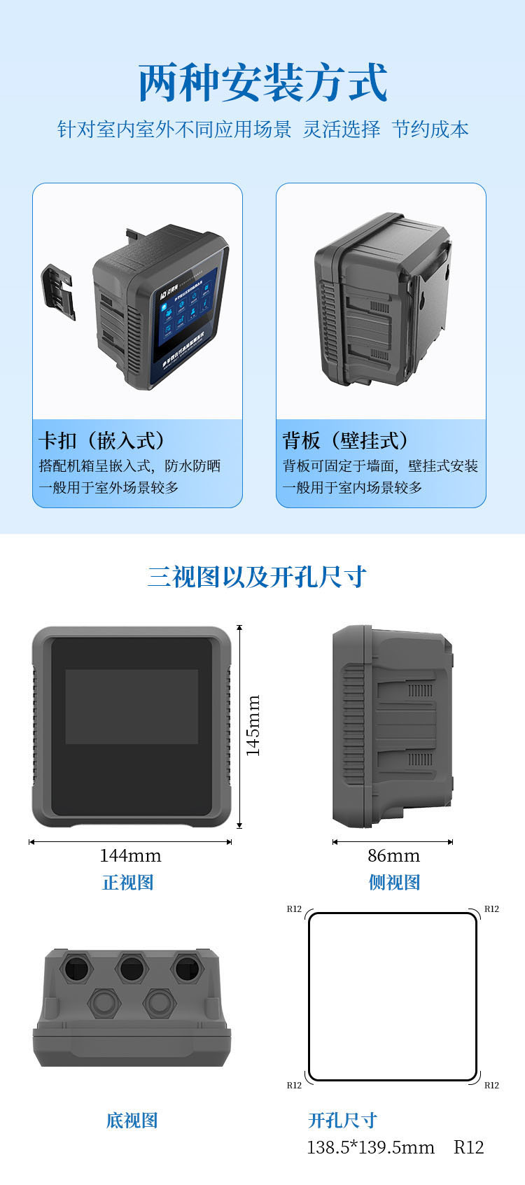 8、控制器可以實現壁掛安裝/面板安裝/夾管安裝。