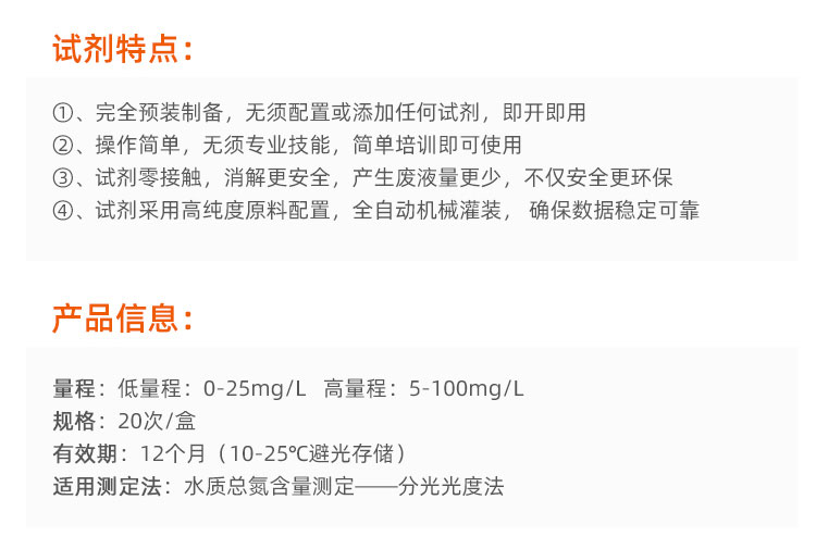 一支一個水樣,省去繁瑣的配置過程,讓實驗員減少接觸危險化學品,更加安全可靠,非專業人員培訓5分鐘,即可輕松上手