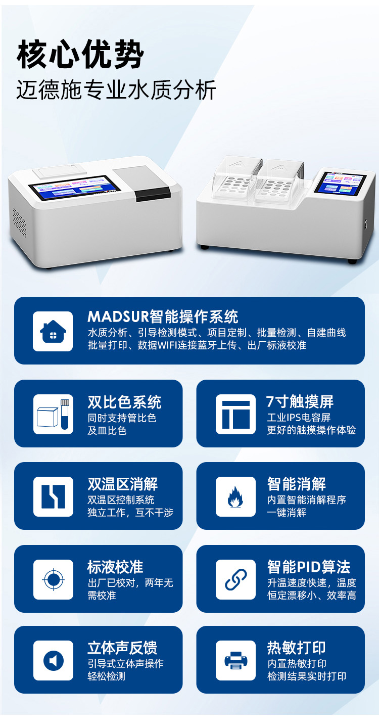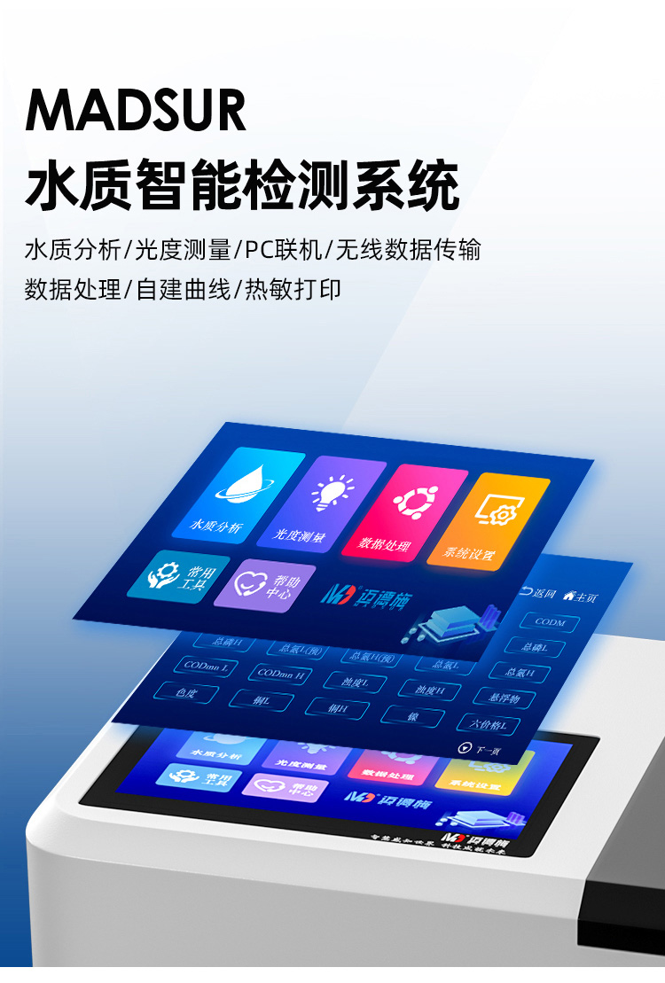 1、自主研發(fā)MADSUR ?水質(zhì)智能檢測(cè)系統(tǒng),無(wú)需專業(yè)人員即可輕松操作。