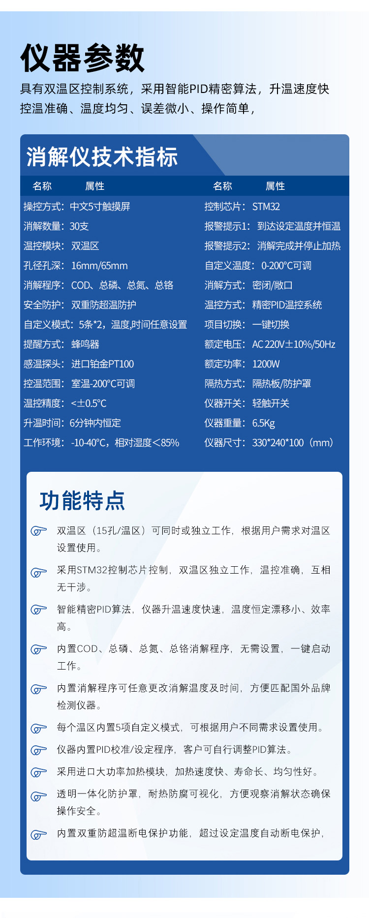 11、配套30孔雙溫區(qū)智能消解儀,多個(gè)消解項(xiàng)目同時(shí)操作,效率翻倍提高。