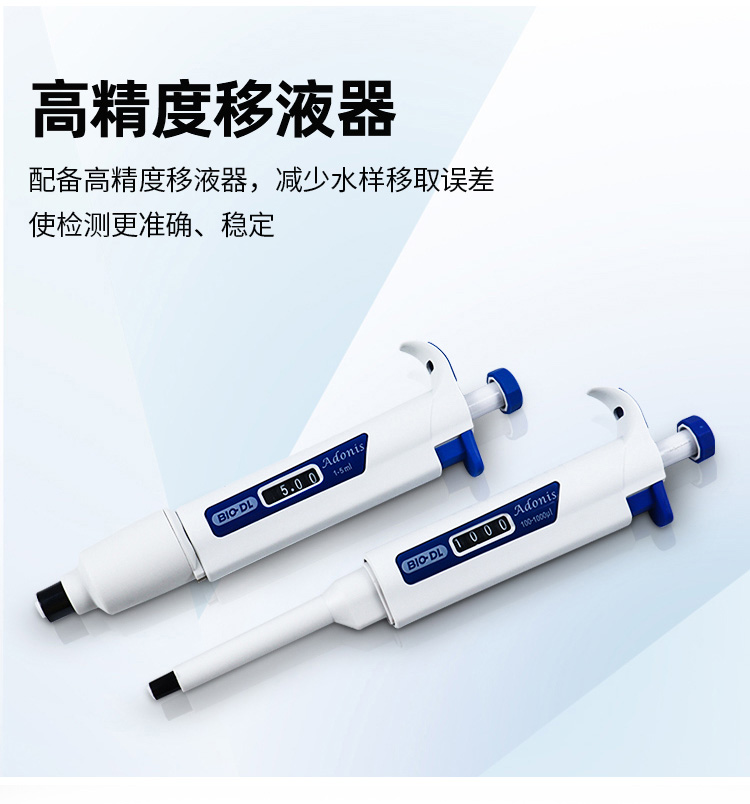 12、配備高精度移液器,減少水樣移取誤差,使檢測(cè)更準(zhǔn)確、穩(wěn)定。