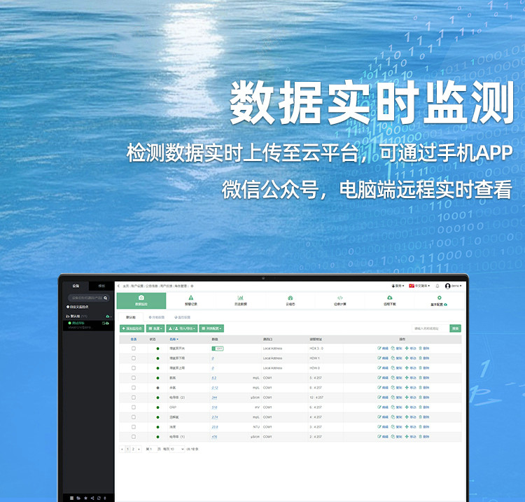 監測參數:水質參數、氣象參數、水文參數等。