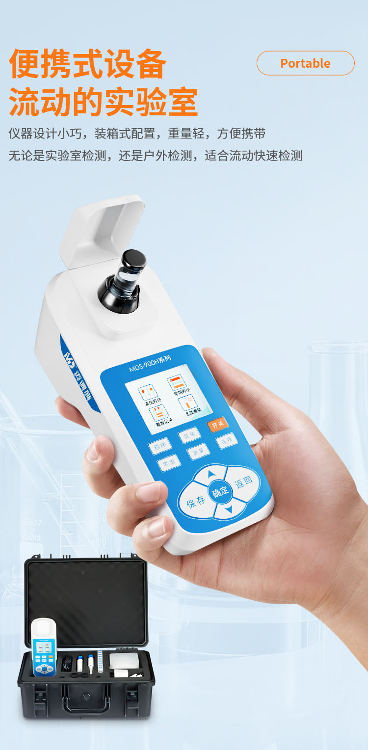 無需檢測試劑,讓檢測更加簡單、快速、準確、安全。儀器以其外觀設計小巧、檢測快速、操作簡單、成本低等特點,廣泛應用于應急監測、污水處理、化工、制藥、醫院廢水、食品、印染等行業廢水檢測方面,還可以應用于科研單位、大中專院校等機構的廢水研究使用。